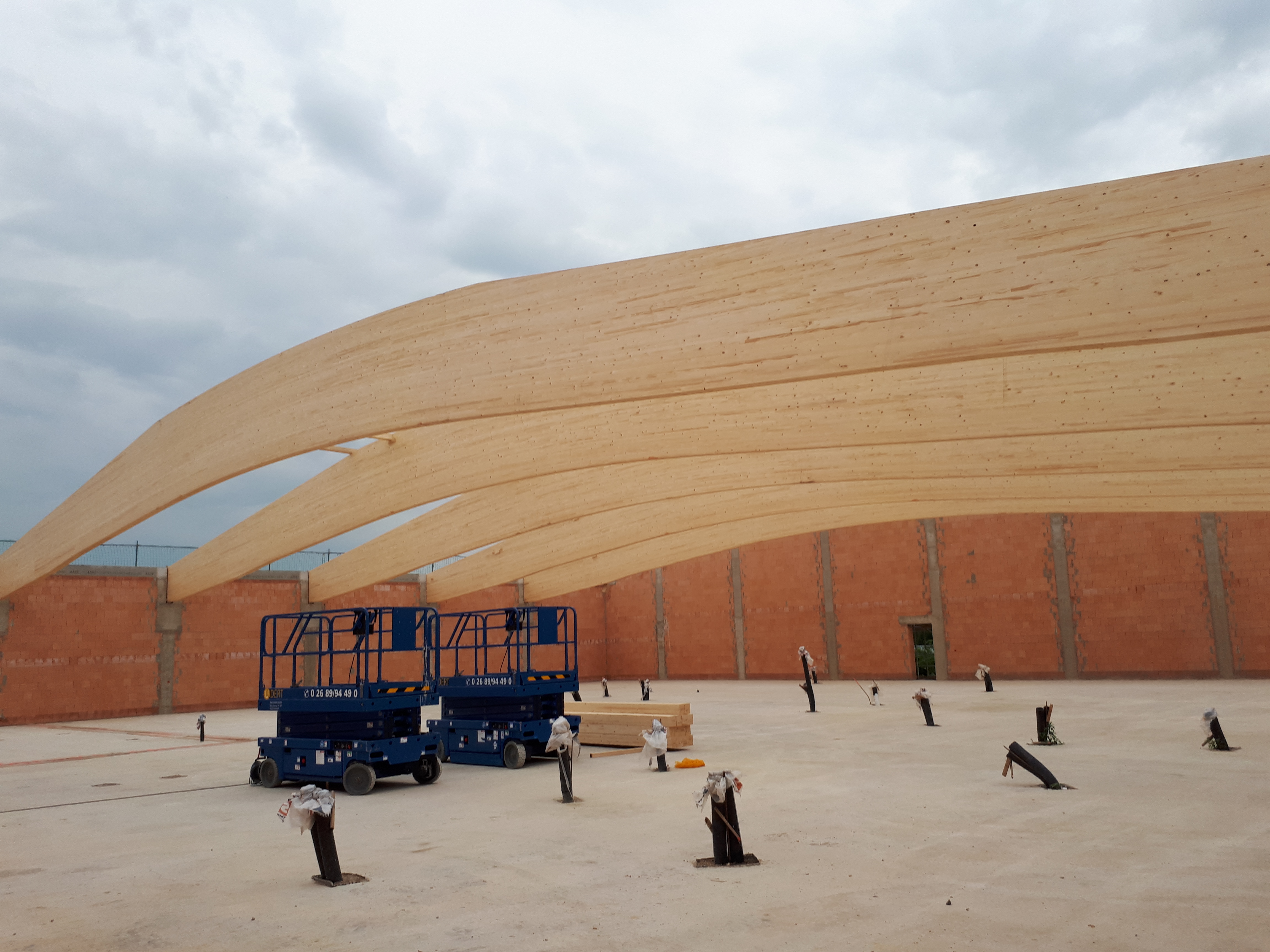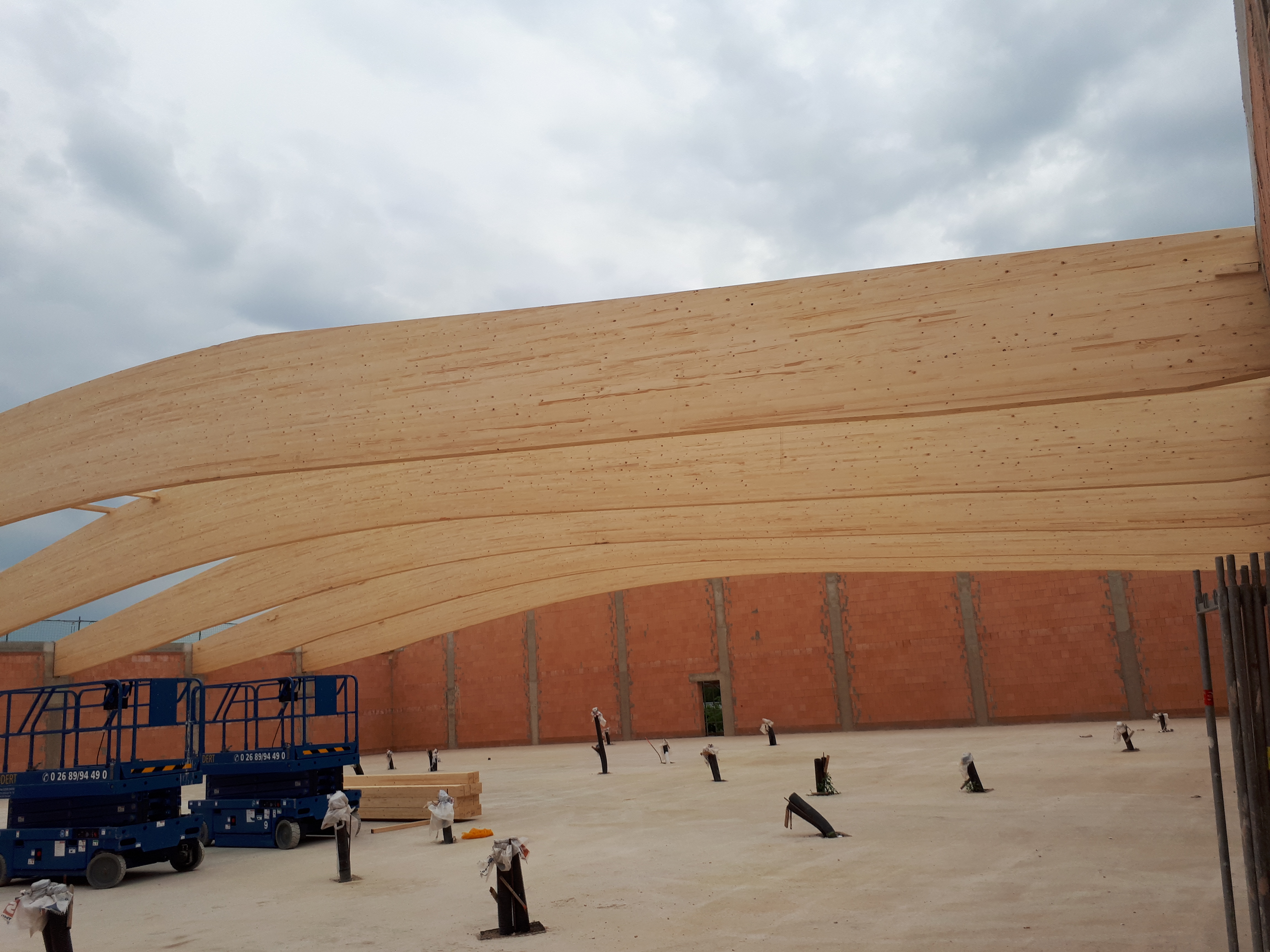 • Lieferung und Montage der kompletten BSH-Binderkonstruktion, Binderlänge ca. 38,00m