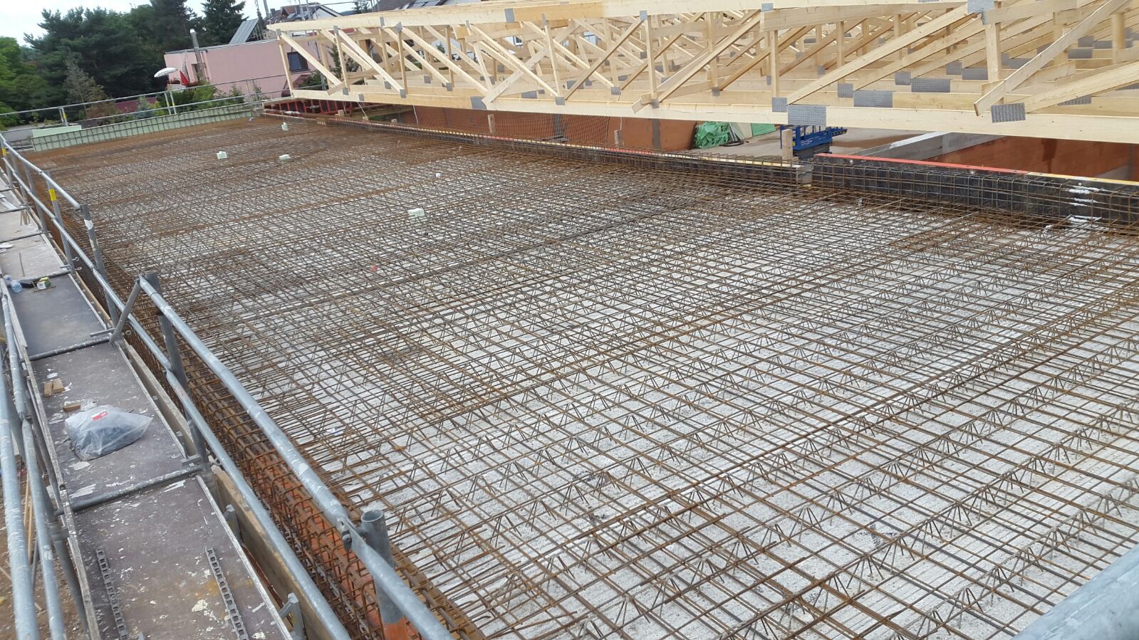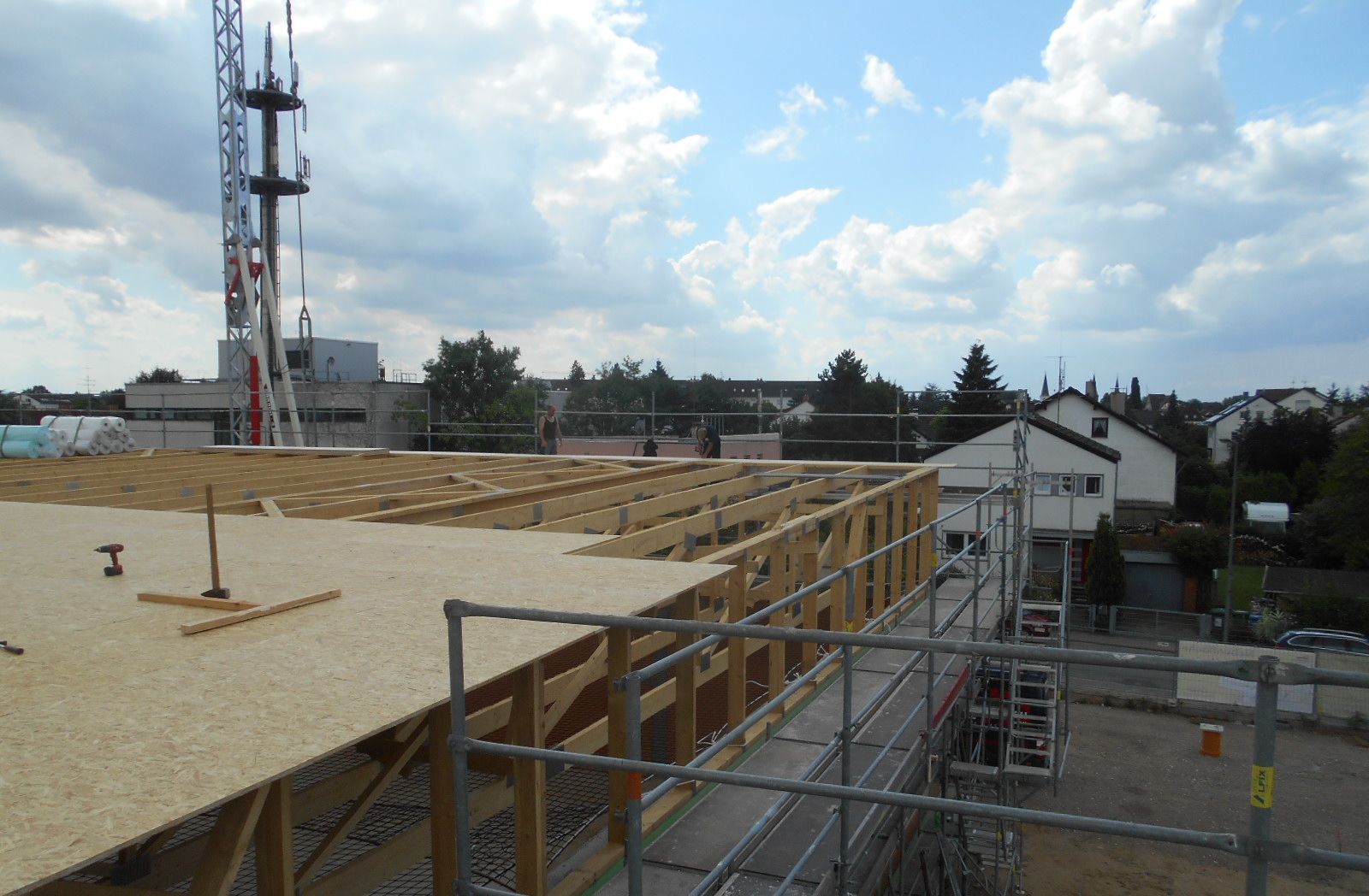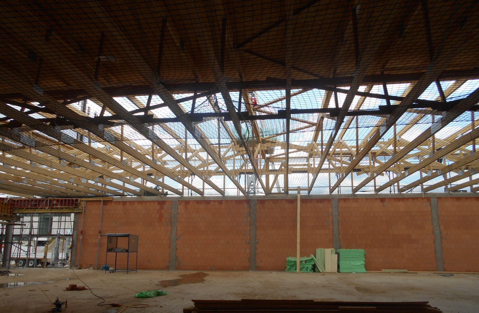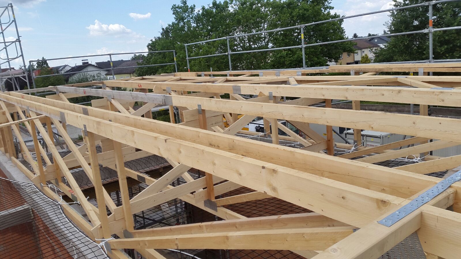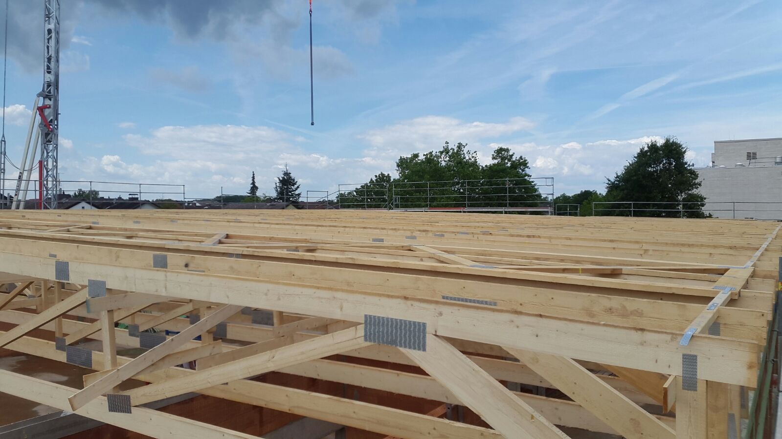 - Lieferung und Montage der Nagelplattenbinder-Dachkonstruktion, Binderlänge über 30,00m