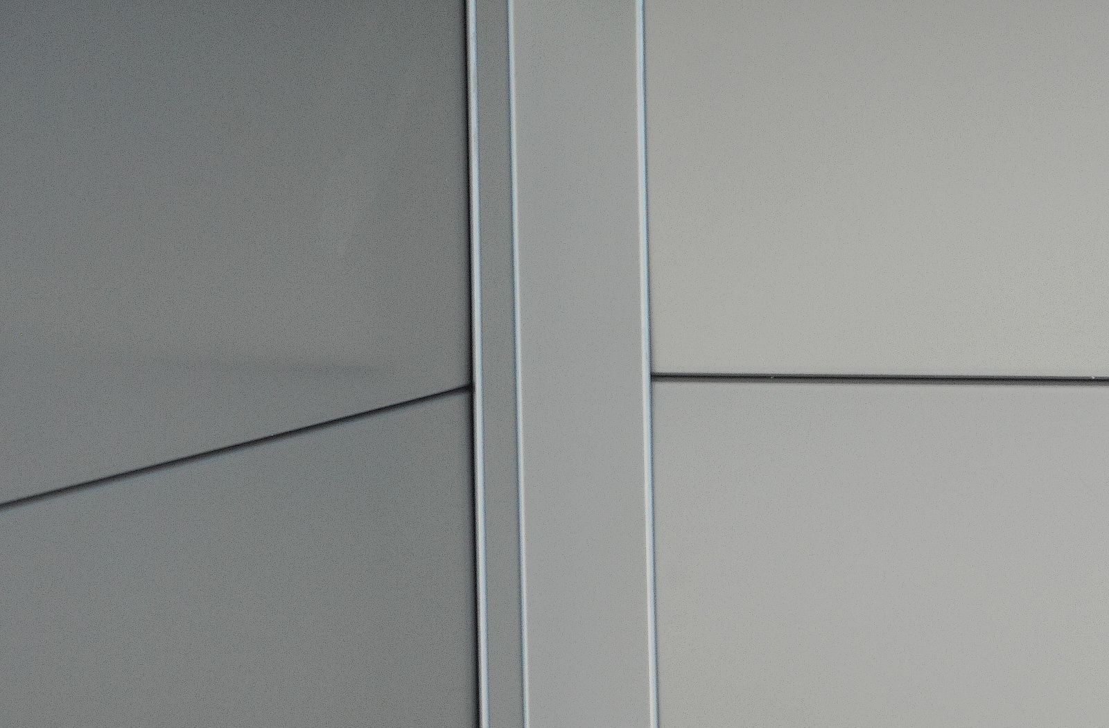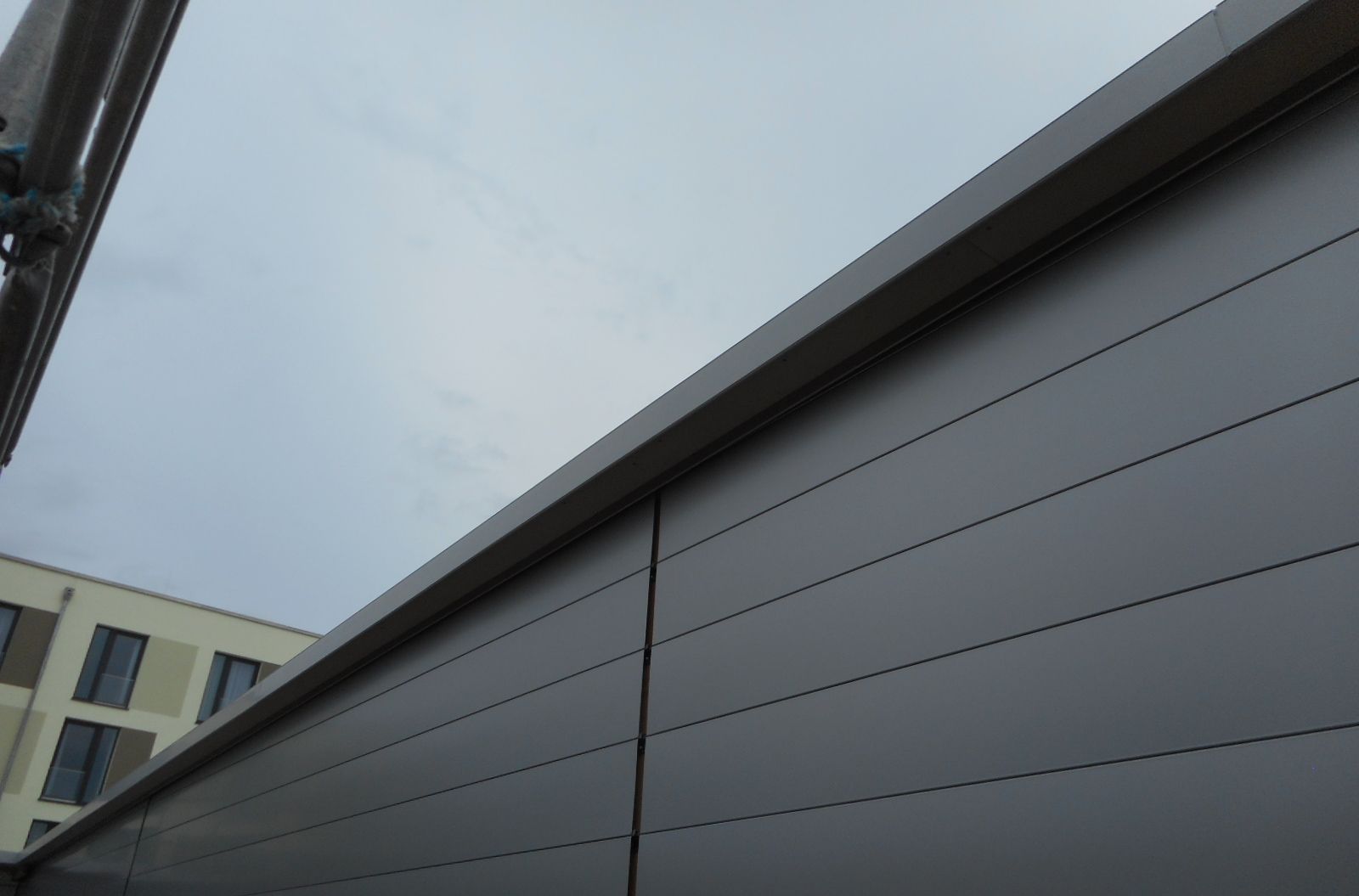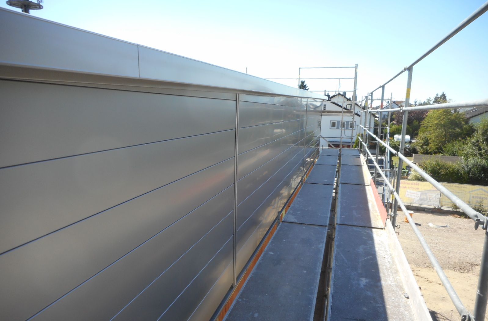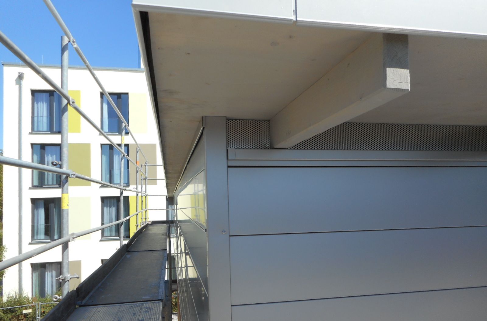 - Fassadenverkleidung im Bereich der Dachkonstruktion mit Aluform Sidings 25/250