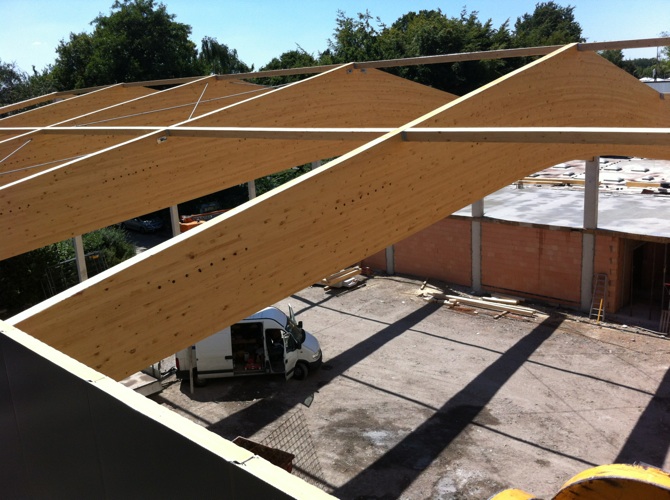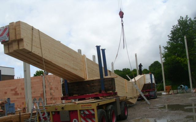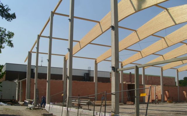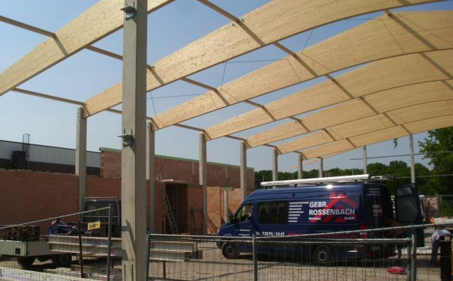 • Lieferung und Montage der Brettschichtholzbinder-Dachkonstruktion