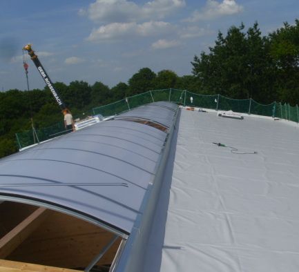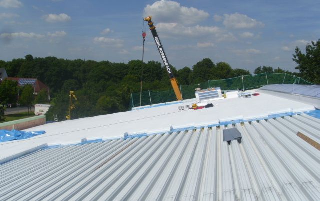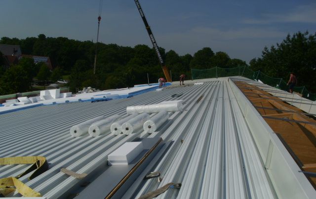 • Trapezblech-Dacheindeckung mit Wärmedämmung und PVC-Dachabdichtung