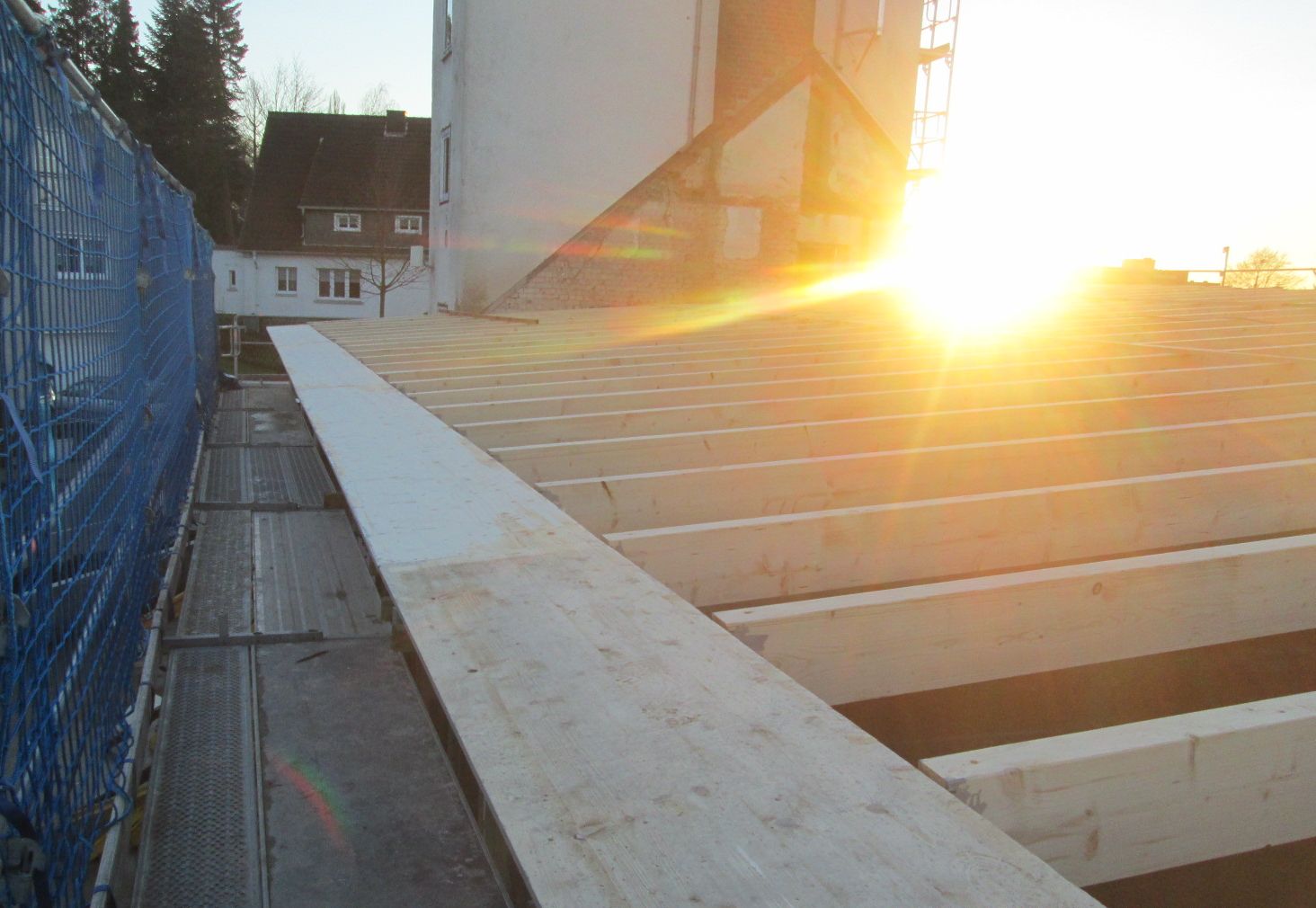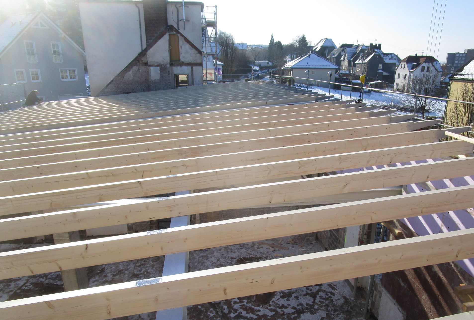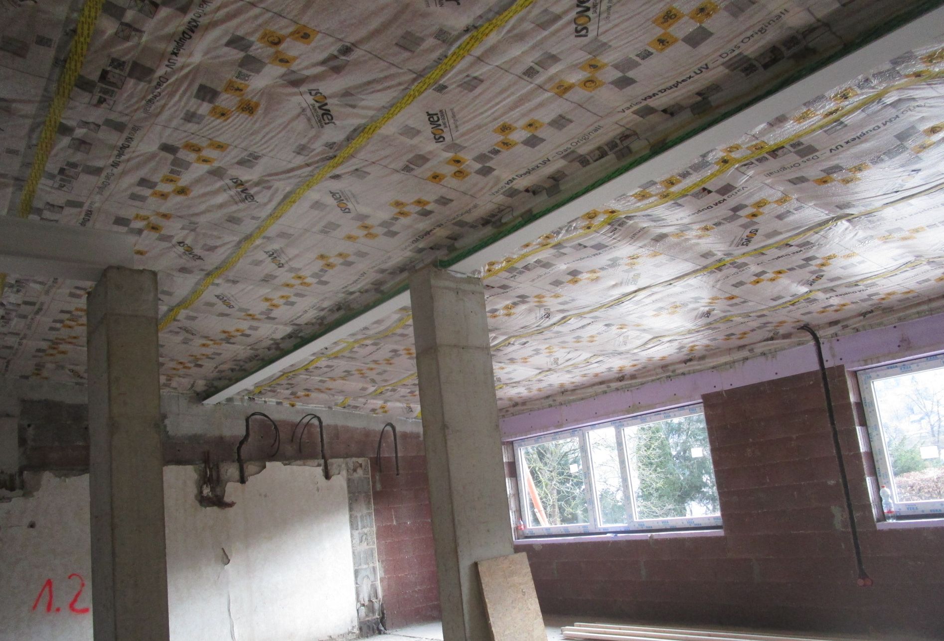 - Wärmedämmarbeiten im Bereich der neuen Dachkonstruktion, incl. Einbau einer feuchtevariablen Dampfsperre und der Unterkonstruktion für die Abhangdecke
