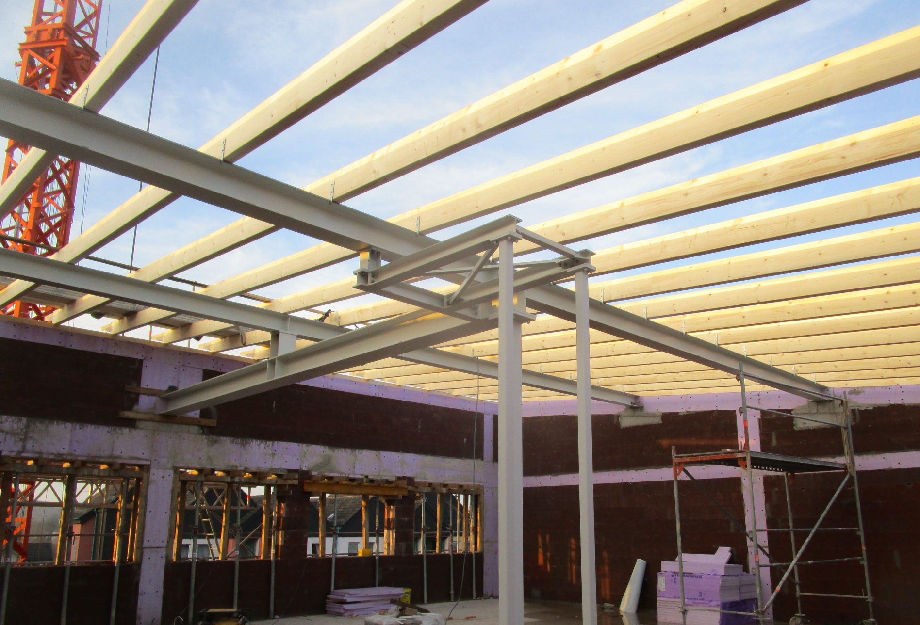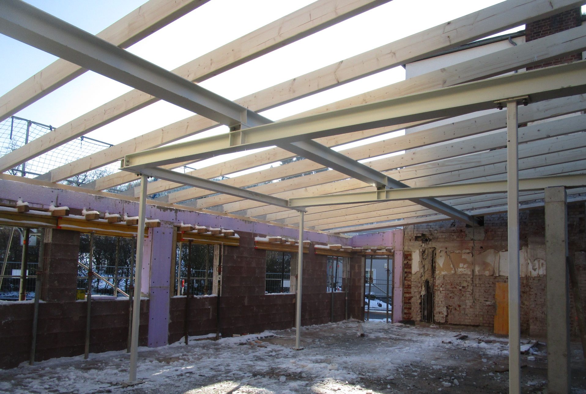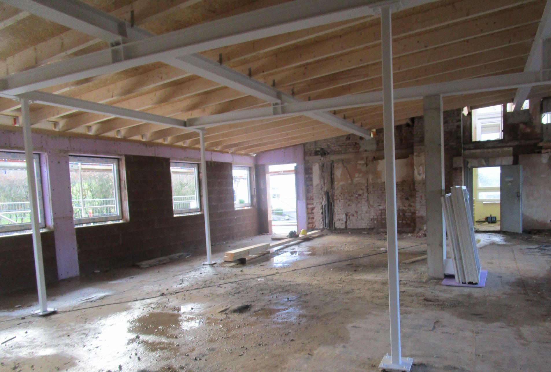- Wärmedämmarbeiten im Bereich der neuen Dachkonstruktion, incl. Einbau einer feuchtevariablen Dampfsperre und der Unterkonstruktion für die Abhangdecke