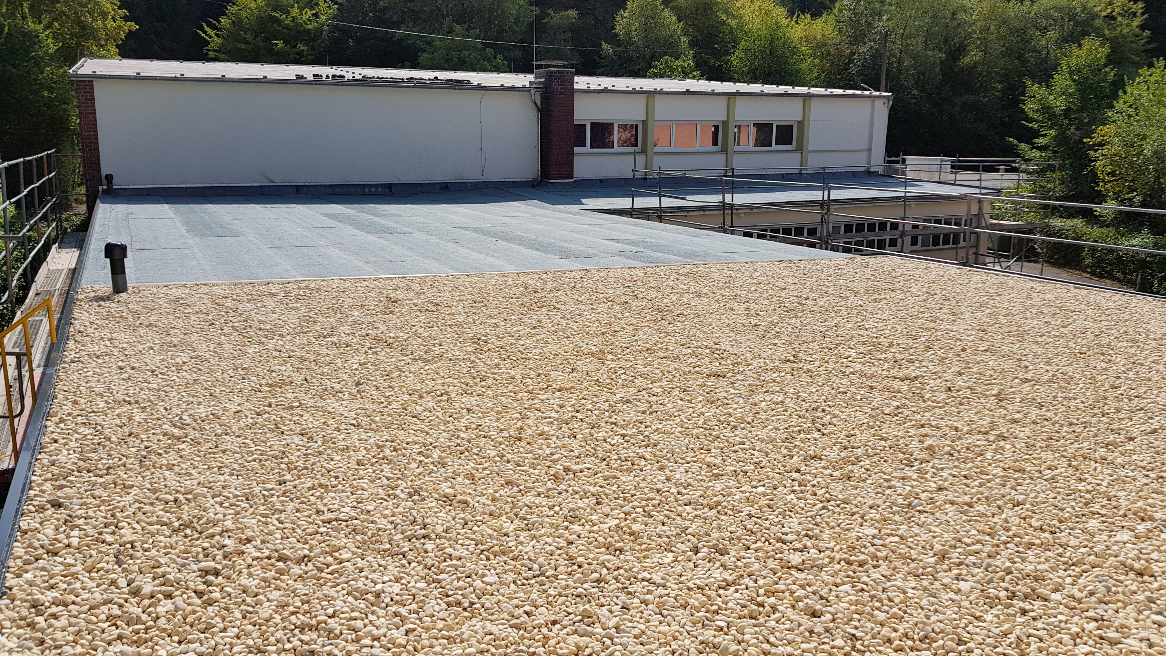 - Bekiesung einer Teildachfläche mit Rheinkies