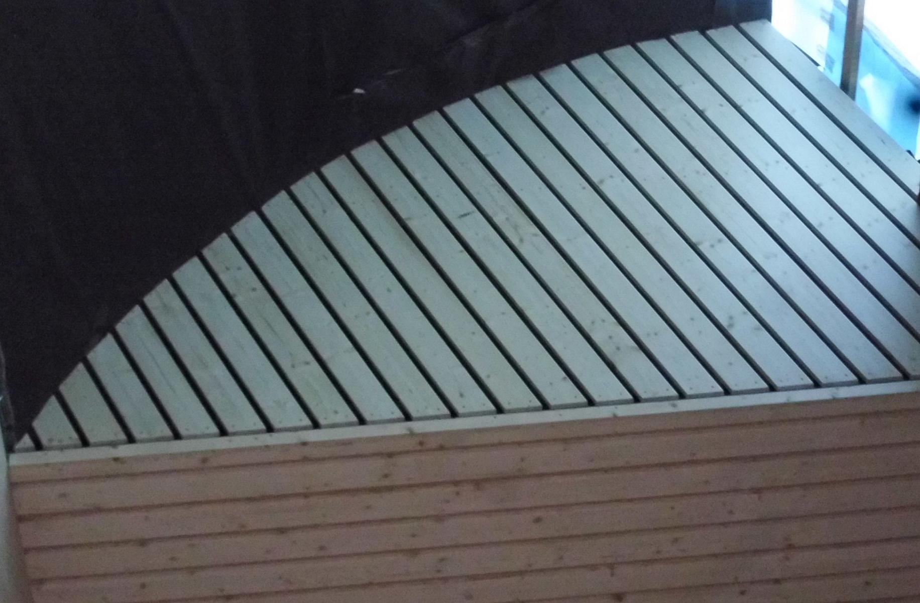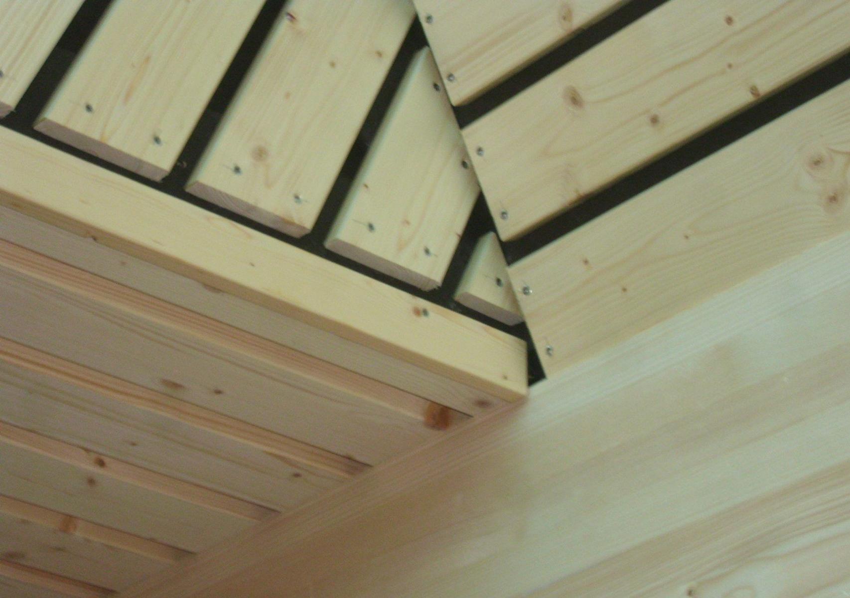 • innenseitige Verschalung der Dachsheds mit Glattkantbrettern als Sichtschalung