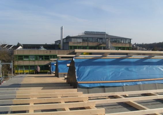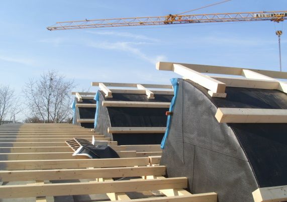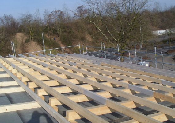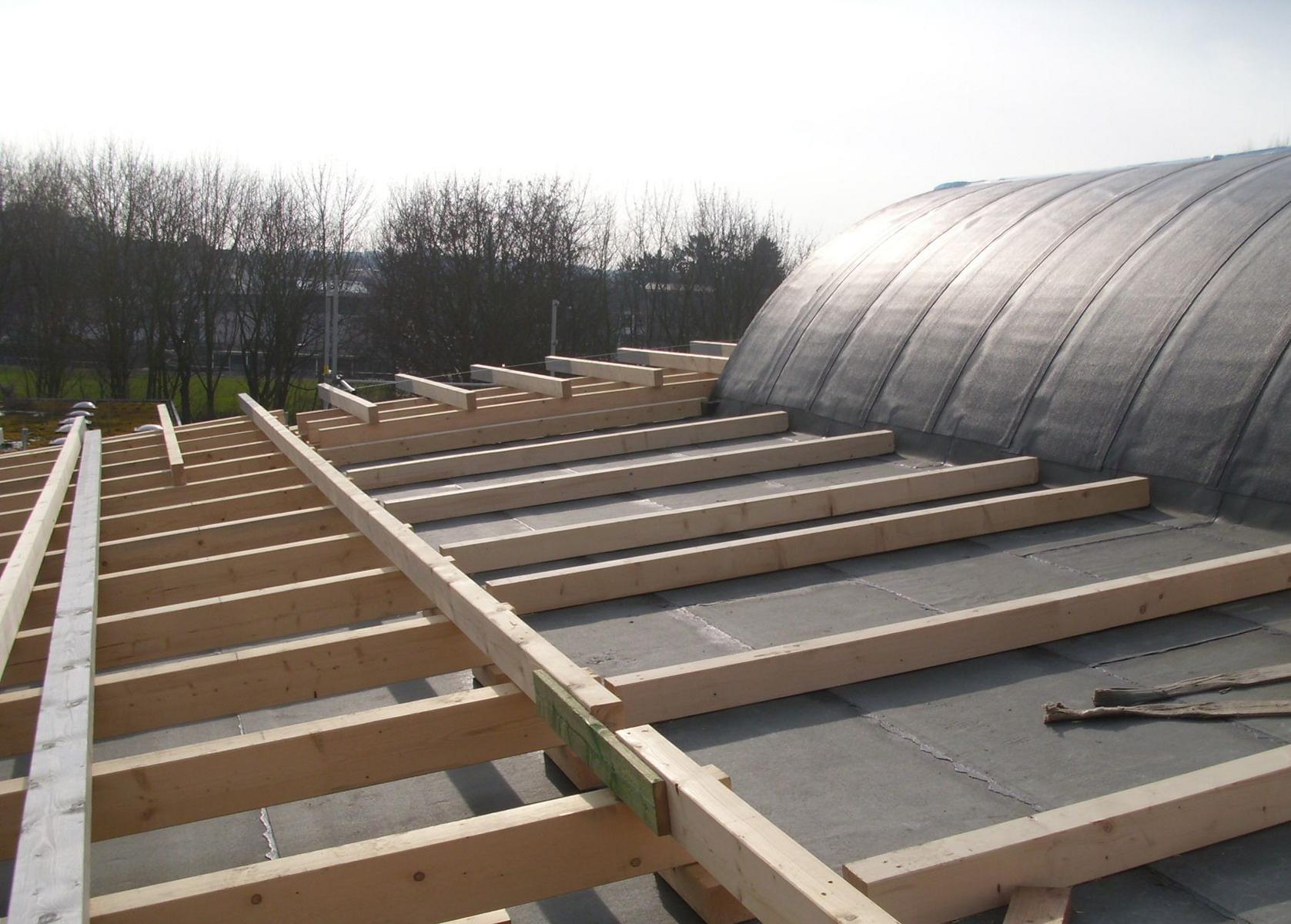 • Distanzkonstruktion auf der Holztragschale des Daches – als Unterkonstruktion für die bauseitige Dacheindeckung – aufgebracht